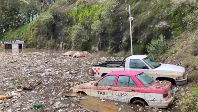 Tapón de basura deja el desbordamiento de la presa Mixcoac