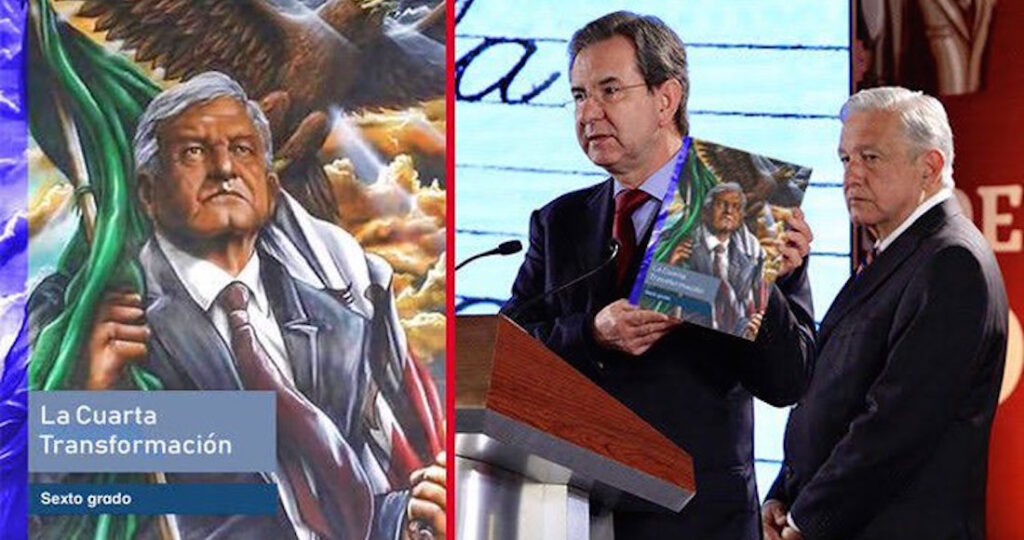 A lo largo del pasado fin de semana, en redes sociales circuló una imagen en la que se observa al Secretario de Educación Pública, Esteban Moctezuma, sosteniendo en sus manos un libro de texto gratuito en el que aparece una imagen del Presidente Andrés Manuel López Obrador en la portada, sin embargo se trata de un fotomontaje.