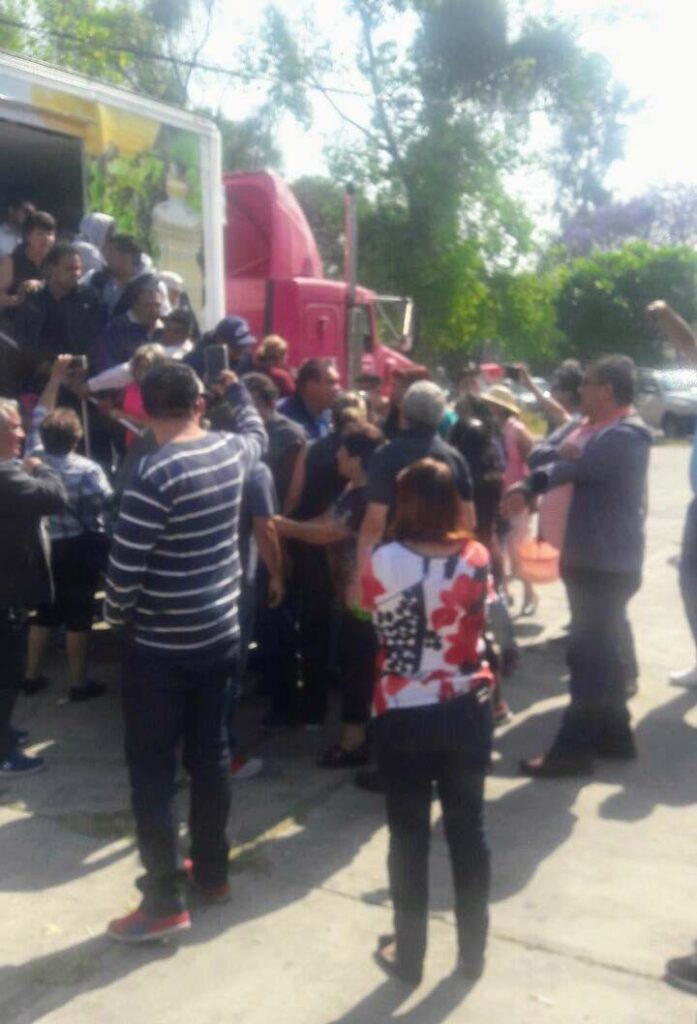 Los funcionarios de la administración morenista: Saúl Eduardo Castro Edona, director de Jurídico; Daniel Alberto García Martínez, subdirector de Servicios de Gobierno y la Jefa de Unidad Departamental de Vía Pública, Gloria Luz Torres Valero se presentaron en el lugar donde se instalaba el tráiler del mercado mayorista acompañado de unos 15 empleados de esa área y bajaron a los trabajadores de CEDA del tráiler para evitar la venta de alimentos.