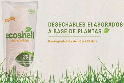 Ecoshell cuenta con una amplia gama de empaques, bolsas y desechables hechos a base de plantas que se biodegradan en plazos de 90 a 240 días sin dejar residuos tóxicos, en comparación con los miles de años que tardan en reintegrarse el plástico al ambiente.