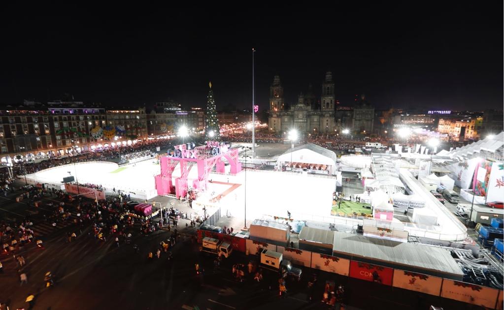 En la Plaza de la Constitución se colocaron cuatro pistas de hielo, dos toboganes y caminos congelados de tres metros de ancho, un túnel monumental central con la imagen de la Ciudad de México en sus cuatro caras, así como el tradicional árbol de Navidad con una altura de 70 metros.