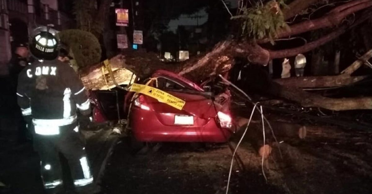 La intensa lluvia provocó que un árbol cayera sobre el automóvil color rojo, que se encontraba estacionado en calles de la alcaldía Benito Juárez y en cuyo interior se encontraba la dama que falleció y un acompañante.