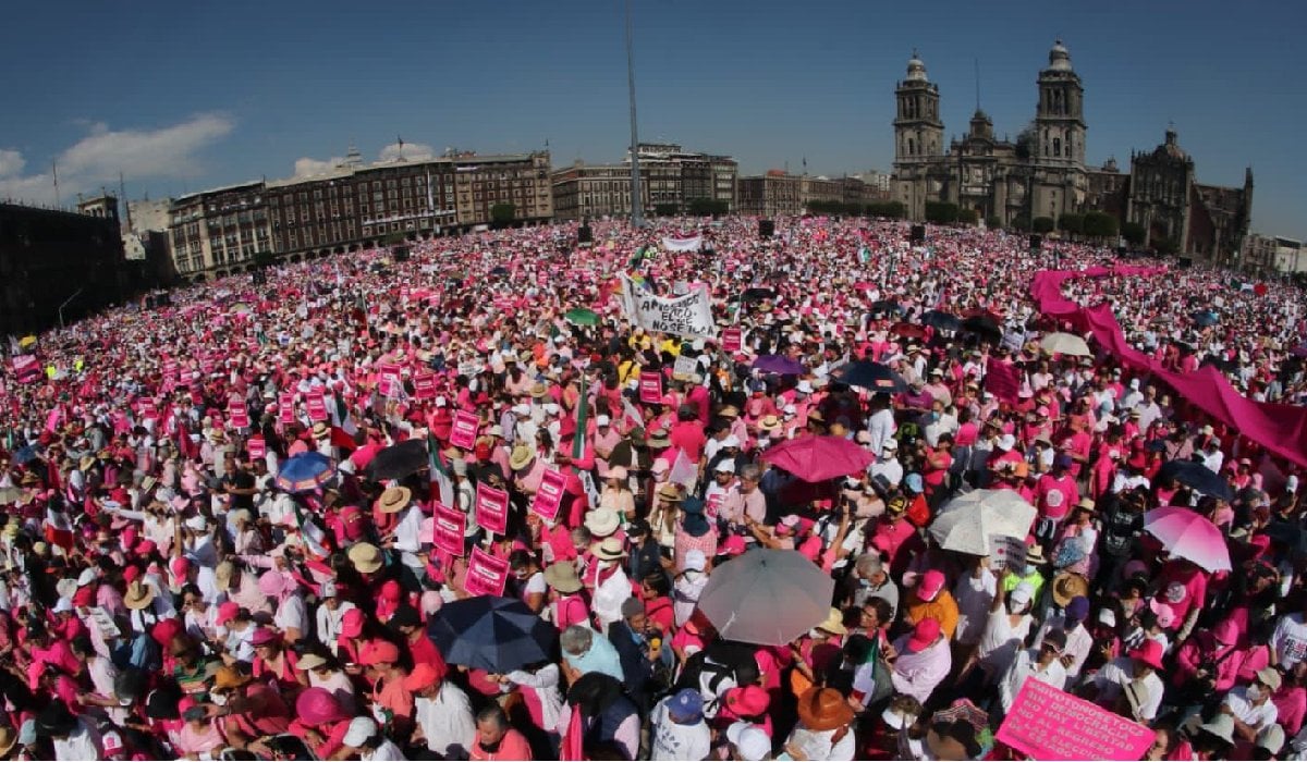 La Secretaría de Seguridad Ciudadana (SSC) informó que 90 mil personas realizaron una manifestación pacífica, en el Zócalo, en favor del INE y en contra de la reforma electoral.