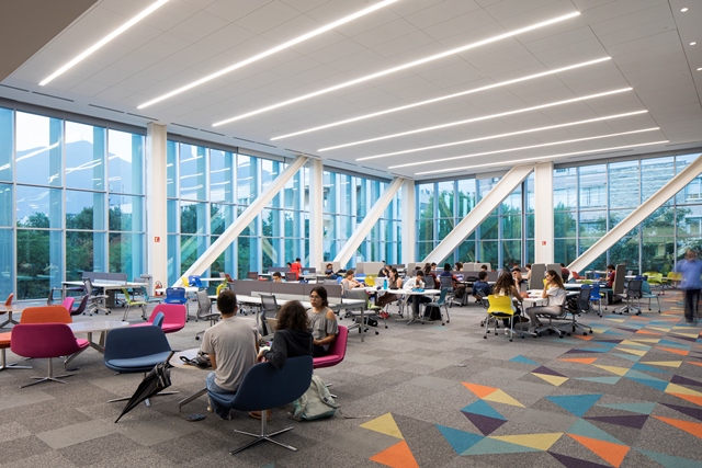Además esta biblioteca cuenta con un auditorio abierto y entre sus servicios también sobresale el área Learning Commons un lugar exclusivo para aprender, trabajar colaborativamente y explotar los medios digitales, así como una cafetería, terraza y salones para conferencias y exposiciones, sin dejar de lado los lugares dedicados para el estudio personal.