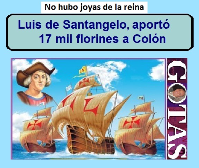 Así que Luis de Santangelo, tesorero general de las rentas eclesiásticas de Aragón, facilitó 17 mil florines y se negó a recibir las joyas de la reina, expresando su apoyo irrestricto a los soberanos españoles.