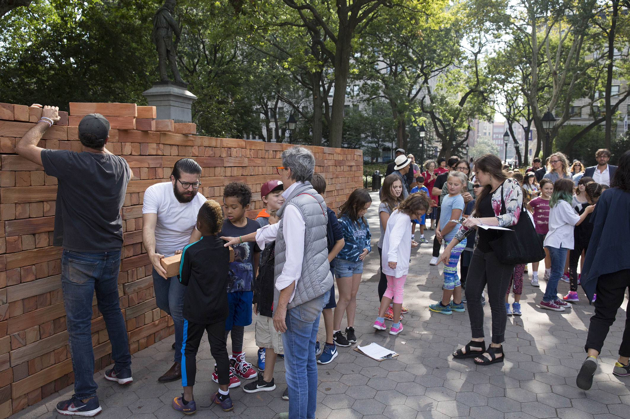 Esta estructura estará formada por 1600 ladrillos de barro -hechos por artesanos en Oaxaca-, que estarán firmados individualmente por el artista. Una vez instalados, se invitará a los transeúntes a desmantelar la pared ladrillo por ladrillo, pudiendo llevarse a casa parte de la obra del artista.