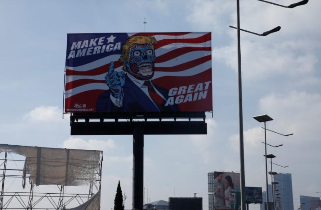 Ciudad de México, 31 Julio.- La imagen enorme de un Donald Trump alienígena ha sorprendido a los habitantes de la Ciudad de México.