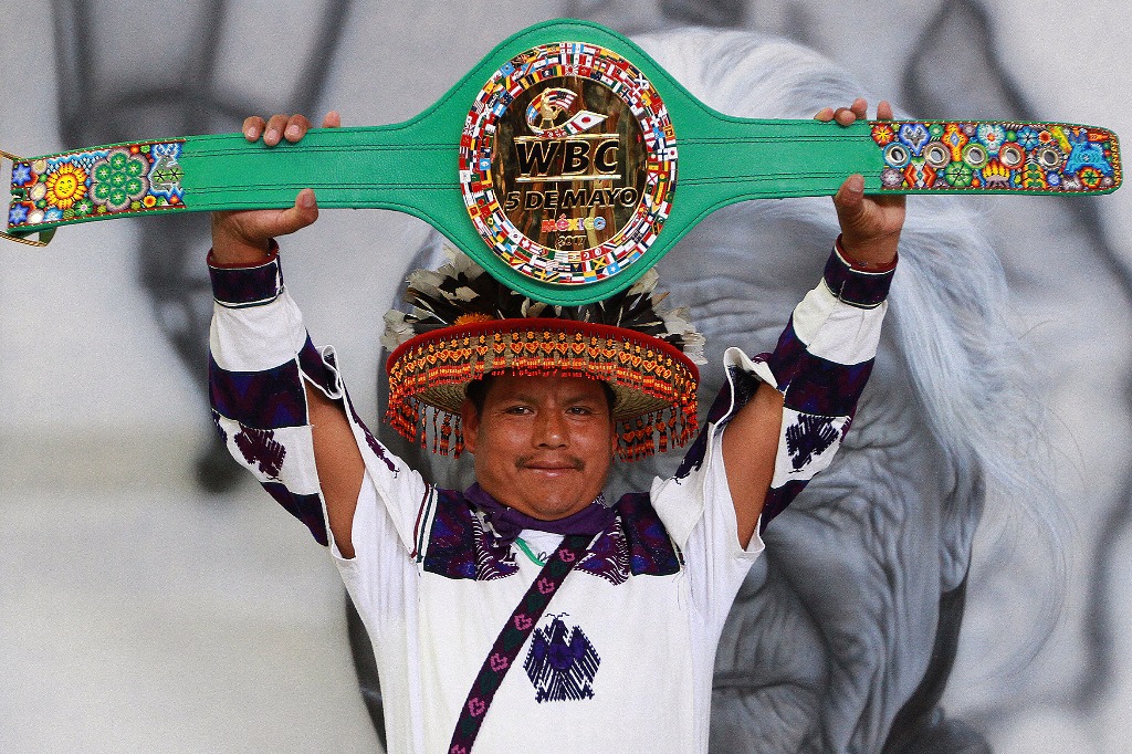 El cinturón huichol que será uno de los dos premios especiales que otorgará el CMB para la pelea del 5 de mayo y del 16 de septiembre, estuvo a cargo del artista Luis de la Cruz, quien plasmó en el cinturón el camino de la vida con imágenes creadas con más de 40 mil microchaquiras de cristal, estuvo presente en la presentación, satisfecho con el resultado final.