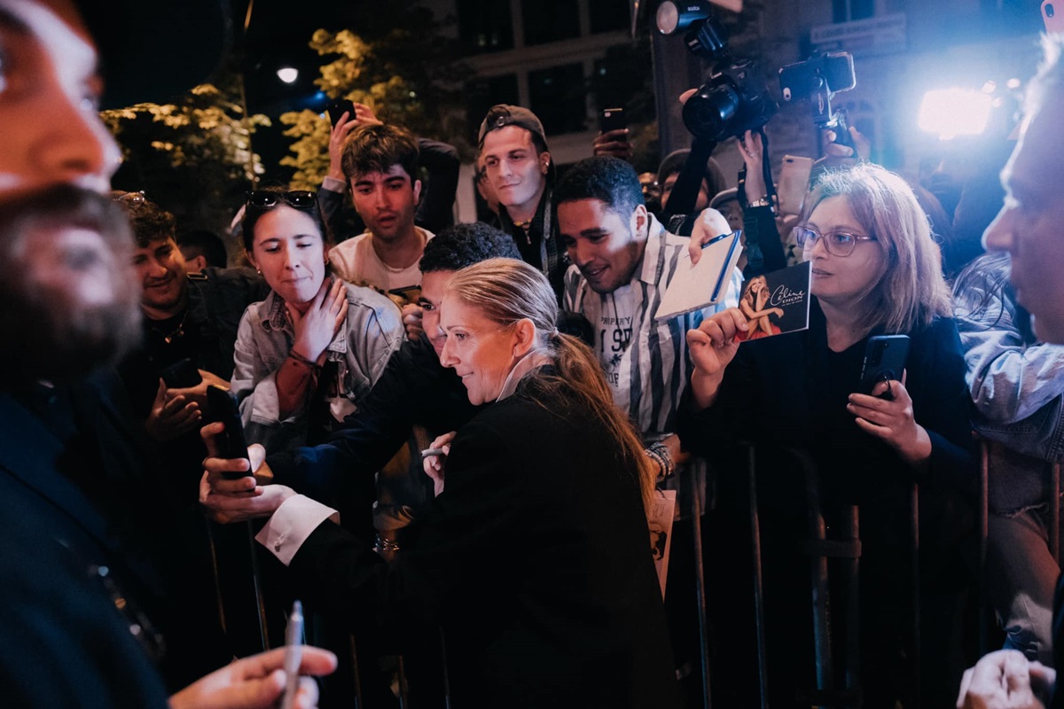 Dion fue filmada por sus fans frente a su hotel parisino y por guardaespaldas que llevaban la acreditación olímpica.