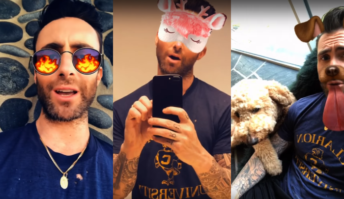 El cantante de Maroon 5 cuenta con un videoclip hecho completamente a través de una cámara móvil y con estos populares filtros de la red , se trata del sencillo «Wait» de su segundo álbum titulado «Red pills blues».