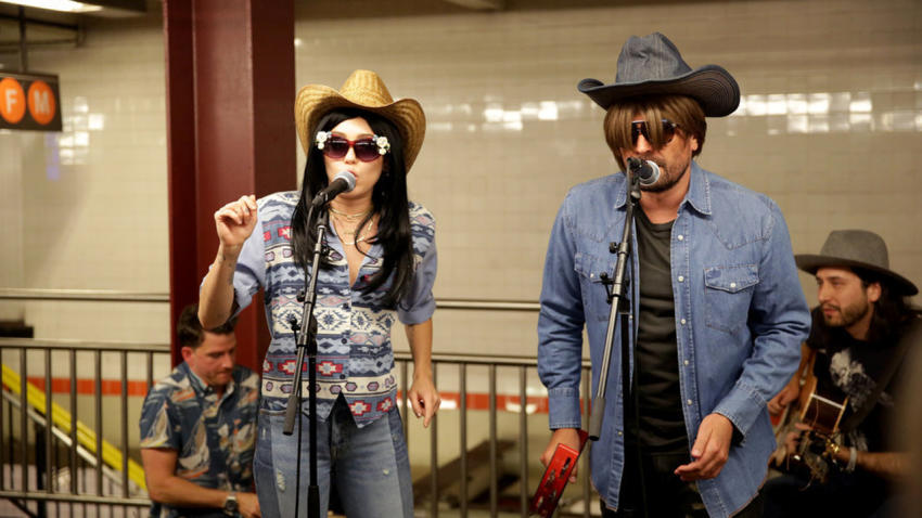 Los famosos utilizaron pelucas, sombreros y lentes oscuros para hacerse pasar por cantantes callejeros y sorprender a los usuarios de este sistema de transporte.