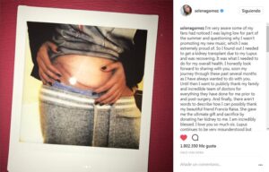 Ciudad de México, 14 Septiembre.-  A través de algunas publicaciones que realizó Selena Gomez en su cuenta de Instagram, dio a conocer que fue sometida a un trasplante de riñón.