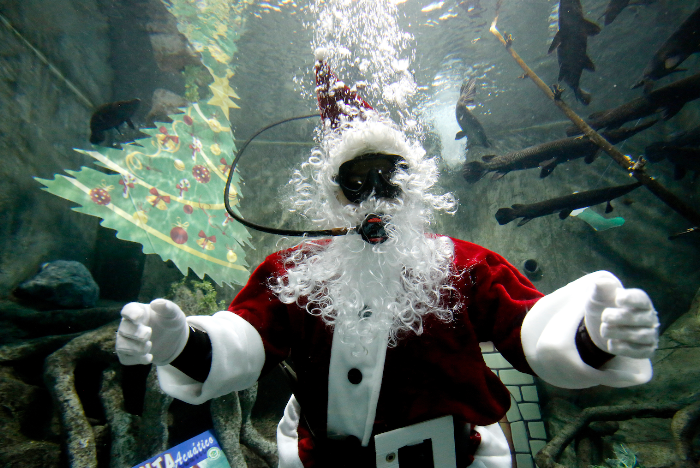 Santa Claus bucea en acuario de Guadalajara
