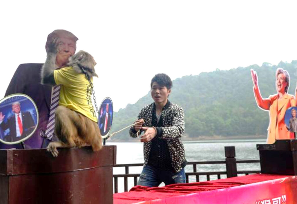 El primero a quien se le considera como el «rey de los adivinos» es un mono chino, que ha decidido inclinarse en favor del magnate como ganador de este proceso electoral, de acuerdo con información difundida por un parque turístico.