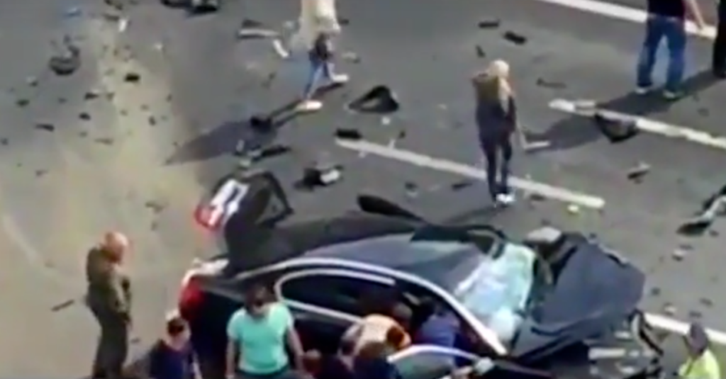 Las imágenes del accidente que rápidamente se han vitalizado, captaron el momento justo en que un conductor de un Mercedes Benz perdió el control del automóvil, invadió a toda velocidad el carril en sentido contrario y se estrelló contra un BMW que trascendió era parte de la flota oficial de Putin.