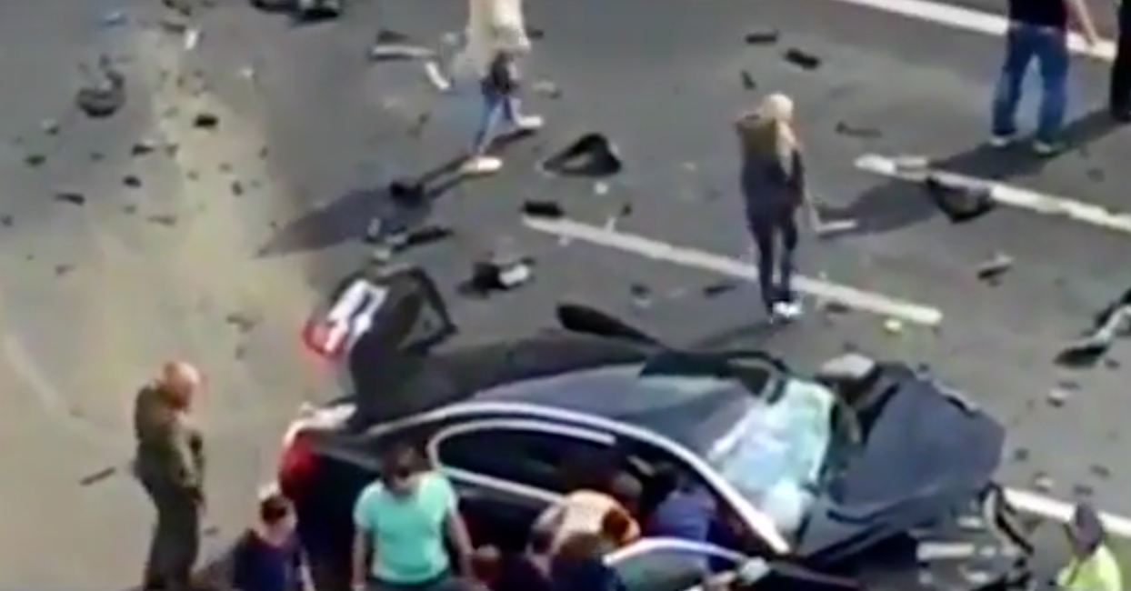 Las imágenes del accidente que rápidamente se han vitalizado, captaron el momento justo en que un conductor de un Mercedes Benz perdió el control del automóvil, invadió a toda velocidad el carril en sentido contrario y se estrelló contra un BMW que trascendió era parte de la flota oficial de Putin.