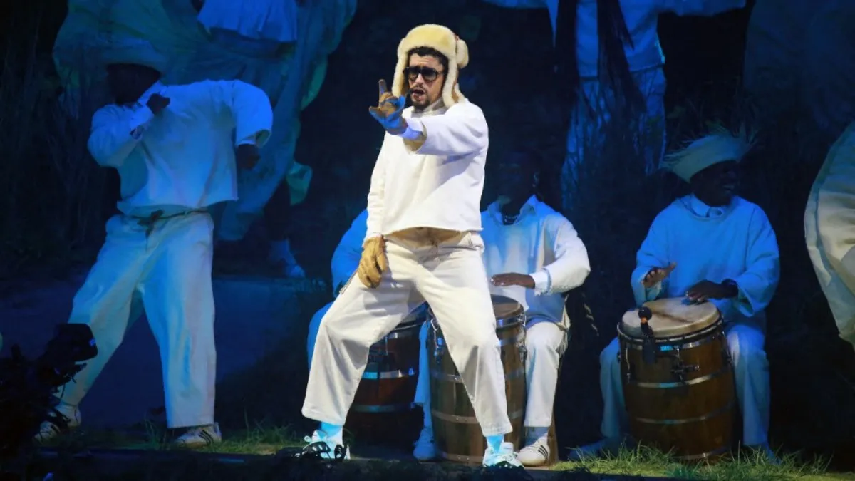 SAN JUAN, PUERTO RICO - SEPTEMBER 20: Bad Bunny performs live during "No Me Quiero Ir De Aquí; Una Más" Residencia at Coliseo de Puerto Rico José Miguel Agrelot on September 20, 2025 in San Juan, Puerto Rico. Gladys Vega/Getty Images/AFP (Photo by Gladys Vega / GETTY IMAGES NORTH AMERICA / Getty Images via AFP)
