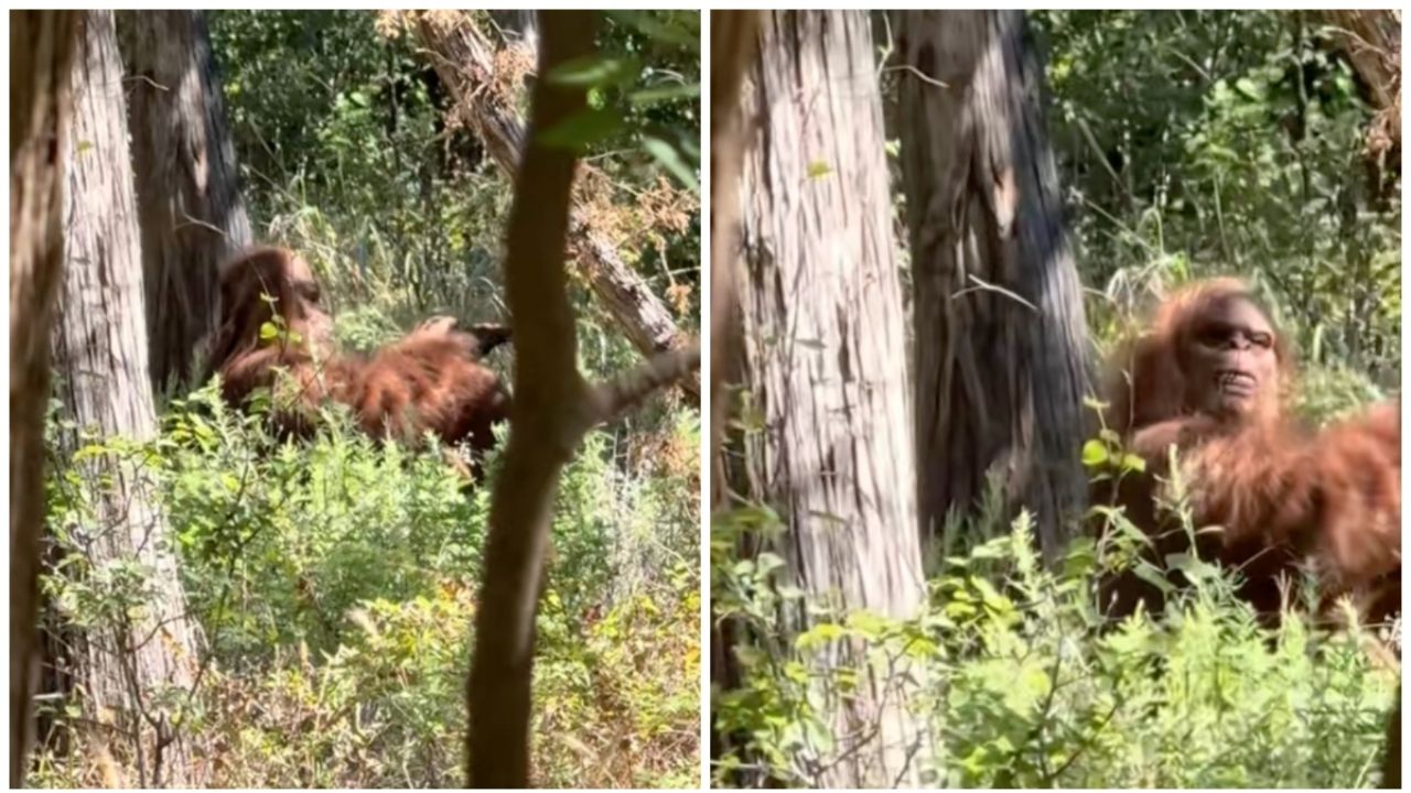 Fue el usuario de TikTok @e_man580 quien subió a sus redes sociales la grabación del supuesto Pie Grande. En video se puede observar cómo la enorme criatura en forma de simio se encuentra recostado sobre un arbol mientras come cuando se percata de la presencia del excursionista y lo comienza a perseguir.