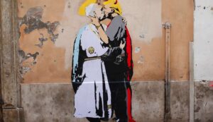 Roma, 11 Mayo.- En una de las paredes de Roma, cerca del Vaticano, fue dibujado un mural que muestra al Papa Francisco besando al presidente estadounidense Donald Trump, a tan solo dos semanas de que ambos líderes se reúnan.