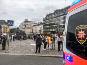 El lugar del atentado fue acordonado por las fuerzas de seguridad y pidieron a los ciudadanos que abandonaran y eviten el centro de Turku hasta que se asegure completamente.