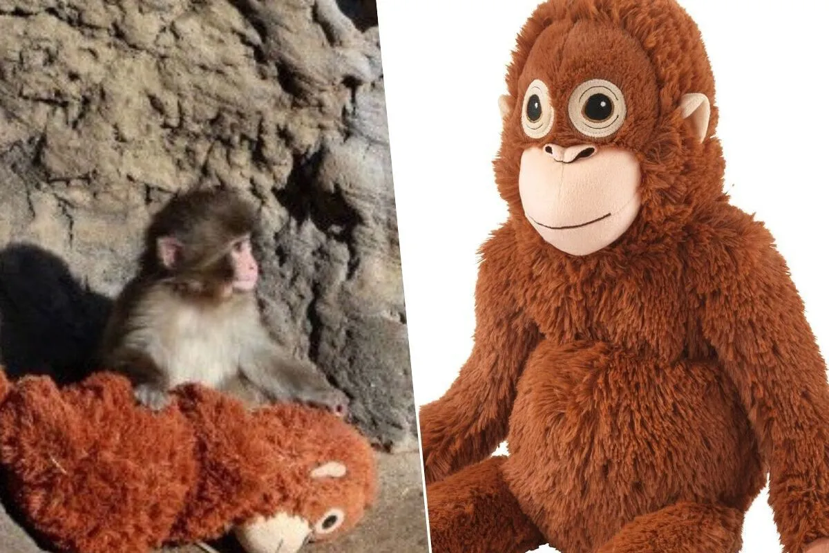 Cuando se integró con otros macacos más grandes, la transición fue complicada. Los cuidadores le dieron un peluche de orangután DJUNGELSKOG de IKEA para brindarle consuelo.
