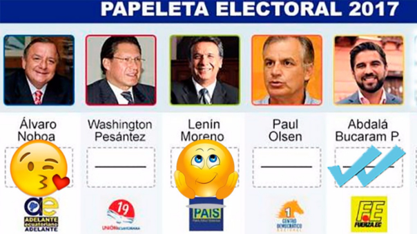 Para este periodo electoral, la junta de la Delegación Electoral de la provincia del Guayas determinó que una cara sonriente, un beso, un corazón, o cualquier símbolo que exprese de forma inteligible la intención del voto, será válido tanto como una raya o una cruz sobre el candidato de su elección.