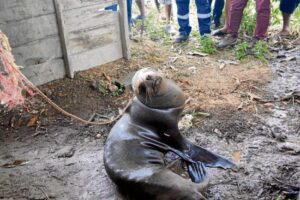 Ecuador, 14 Septiembre.- Un lobo marino que se encontraba atado a un árbol en un parque turístico fue rescatado por parte de Funcionarios municipales y el personas del Ministerio de Ambiente de Ecuador.