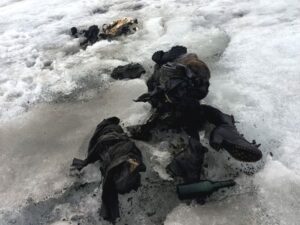 También se supuso que los cuerpo fueron arrastrados por el glaciar debido a los movimiento que ha causado el cambio climático.