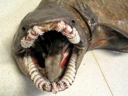 Entre sus características están su cabeza “como de lagarto, hocico en forma cuadrada, gran boca con alrededor de 300 dientes pequeños pero como anzuelos” que le permiten atrapar a sus presas.