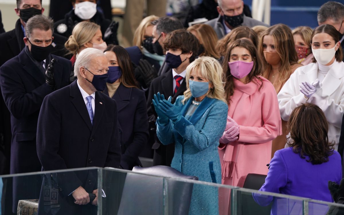 Los Biden abandonaron Blair House, la casa de huéspedes presidencial, 15 minutos tarde, aparentemente esperando que el presidente saliente, Donald Trump, terminara sus comentarios de despedida.