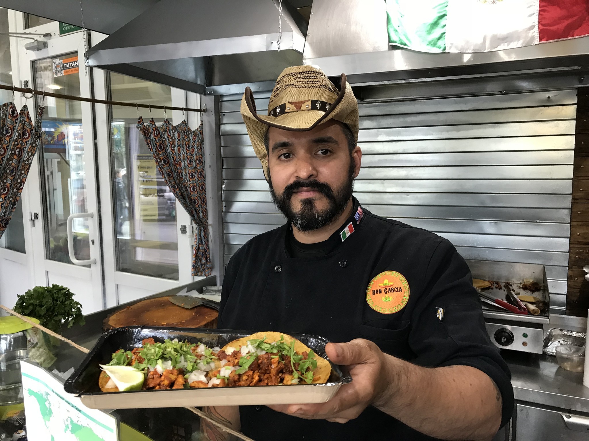Ciudad de México, 13 Julio.- Gerardo García originario de Tamaulipas abrió la primera taquería al estilo «mexicano» en Rusia, puedes encontrar tacos de carnitas, adobada, suadero, barbacoa, longaniza, tripa y los puedes acompañar con tepache o agua de horchata. Todo esto lo encuentras en el restaurante «Don García.