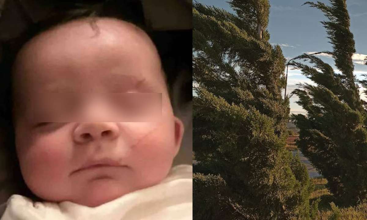 Un tornado arrancó el tejado de su casa y lanzó por los aires el capazo donde dormía, lo que hizo que acabase incrustado en un árbol. Tras varios minutos de búsqueda en mitad del caos, fue su padre quien encontró al pequeño sin daños graves.