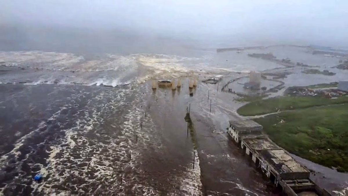 «¡Nuestra fábrica está bajo el agua!», grita entre lágrimas una residente de Severo-Kurilsk, mientras contempla cómo las olas inundan el puerto de esta ciudad rusa, ubicada al norte de las islas Kuriles, tras un devastador terremoto, seguido por un tsunami en Rusia.