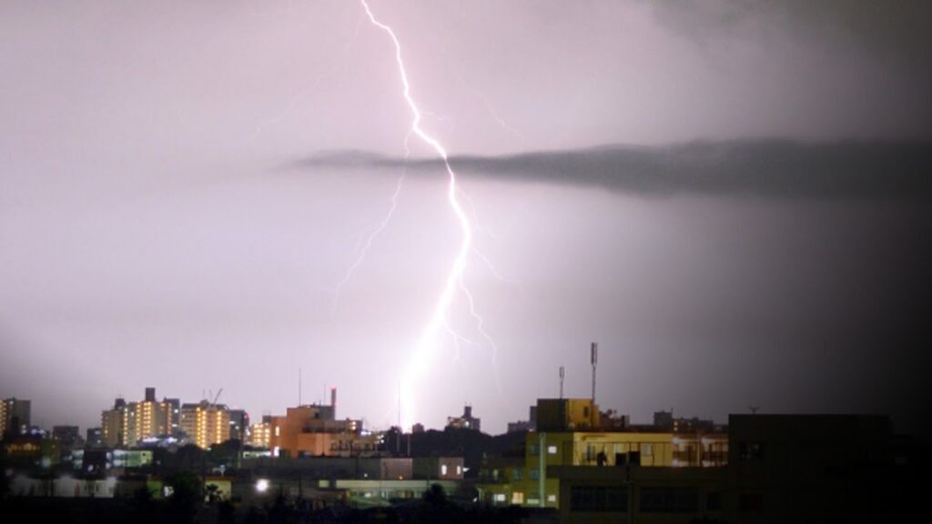 En el video se puede observa que mientras el reportero Lu Xiaodong daba el clima con el micrófono en la mano y la otra en el paraguas, el rayo lo hizo gritar del dolor.