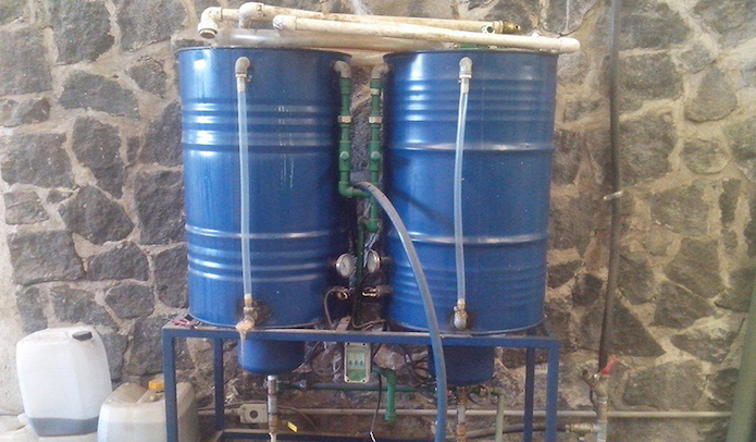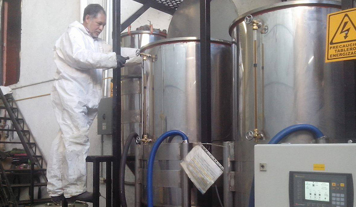 Moisés Flores relató que primero empezaron con un reactor pequeño, con un alcance para pocos litros de biodiésel, pero desde hace 6 meses, él y su papá tuvieron que construir uno nuevo con capacidad para 4 mil 500 litros de biocombustible, y por ahora están produciendo mil 500 litros al día.