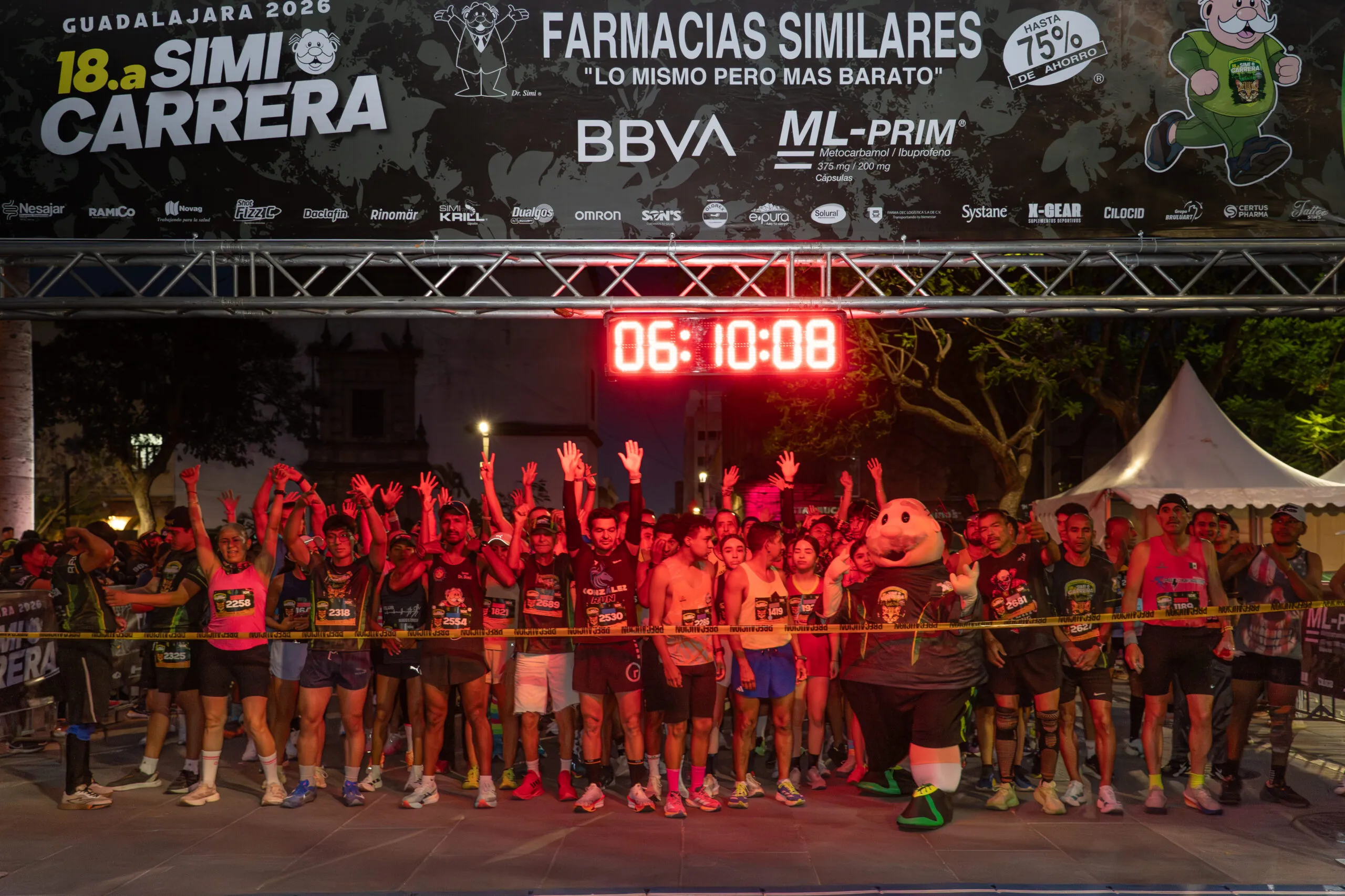 La competencia inició a las 6:30 de la mañana con la tradicional “lluvia de simipeluches” en el corazón de Guadalajara, mientras corredores, familias y mascotas recorrieron las calles animados por distintos clones del Dr. Simi a lo largo del trayecto.