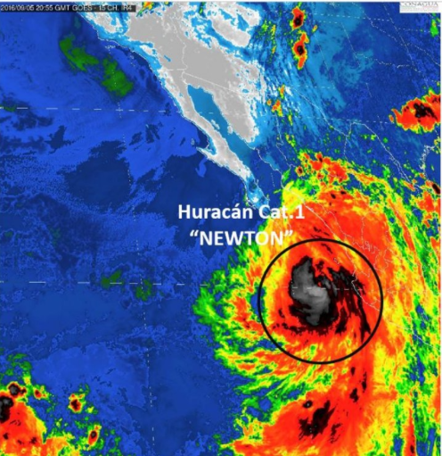 Ciudad de México, 5 Sep.- El Servicio Meteorológico Nacional (SMN) informó que la tormenta tropical Newton se convirtió en huracán categoría 1, por lo que se tomarán medidas especiales en diversas entidades del país.