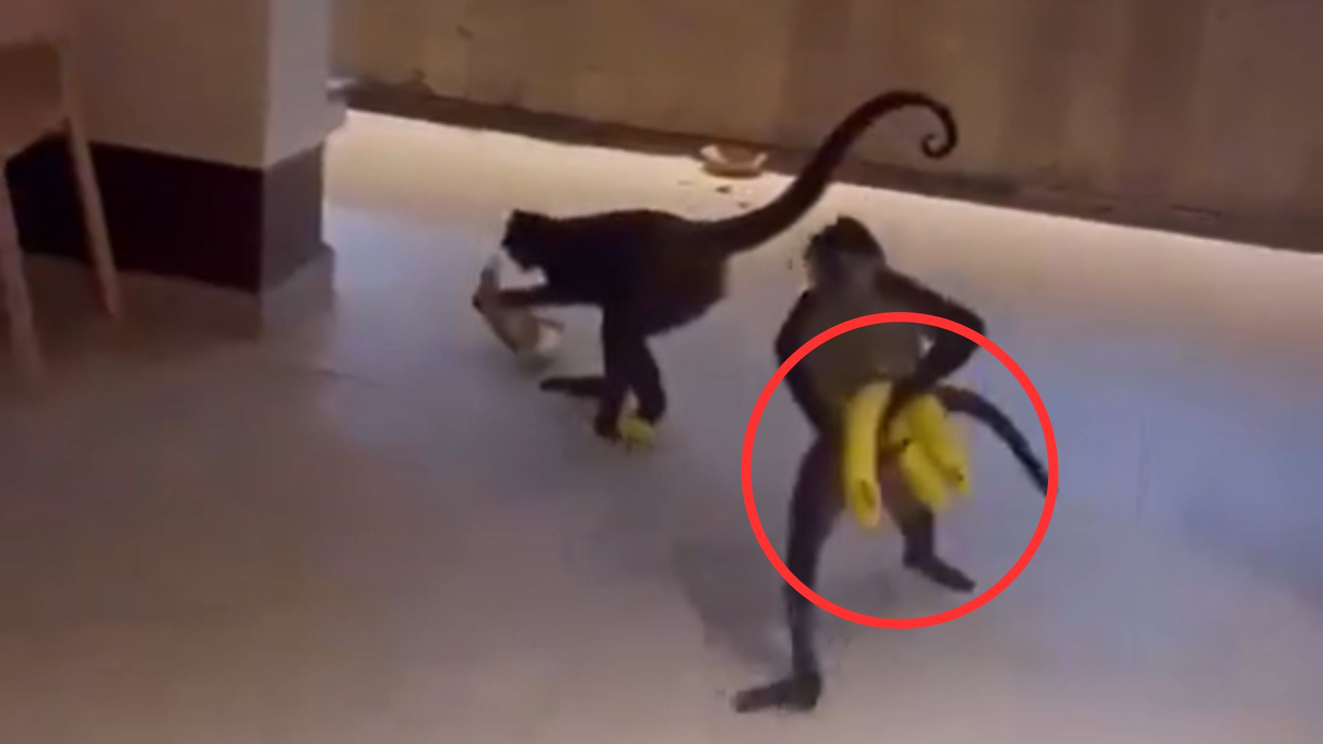 Los primates «huyeron» en medio de las miradas y expresiones de asombro de los huéspedes del hotel, incluidos niños, quienes captaron el video y rieron por la acción.