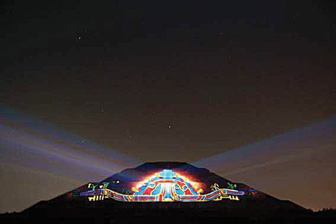 La experiencia es un espectáculo multimedia proyectado nunca antes visto sobre la zona arqueológica de San Juan,Teotihuacán, ha sido notable el éxito del evento nocturno.