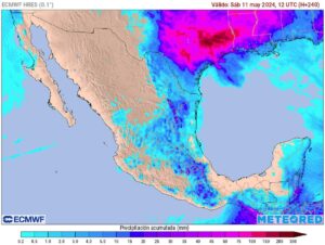 Del 8 al 11, seguiría el potencial en estas áreas, pero con menor cantidad habiendo incertidumbre en su distribución: el modelo GFS la concentra en las entidades del Valle de México y Sierra Madre Oriental; el ECMWF sobre el Altiplano desde Zacatecas al Valle de México; el GDPS cubre áreas del noreste, altiplano y occidente desde Coahuila hasta Jalisco.