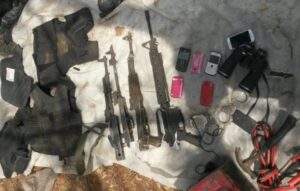 Las autoridades decomisaron ocho cargadores calibre 2.23, 12 de calibre 7.6 utilizadas para los cuernos de chivo, 20 cartuchos, 12 escopetas, cinco chalecos tácticos, siete radios portátiles y seis teléfonos celulares.