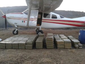 Baja California, 23 Marzo.- Fue detenida una aeronave por elementos del Ejército y de la Policía Federal, en Baja California, la cual contenía 315 kilos de cocaína, unos 150 de metanfetaminas y 42 de heroína.