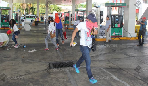 Ciudad de México, 3 Ene.- En Tapachula, Chiapas, hombres y mujeres con el rostro cubierto provocaron destrozos a la gasolinera Macal y regalaron gasolina y aceite a las personas que se encontraban en el lugar.