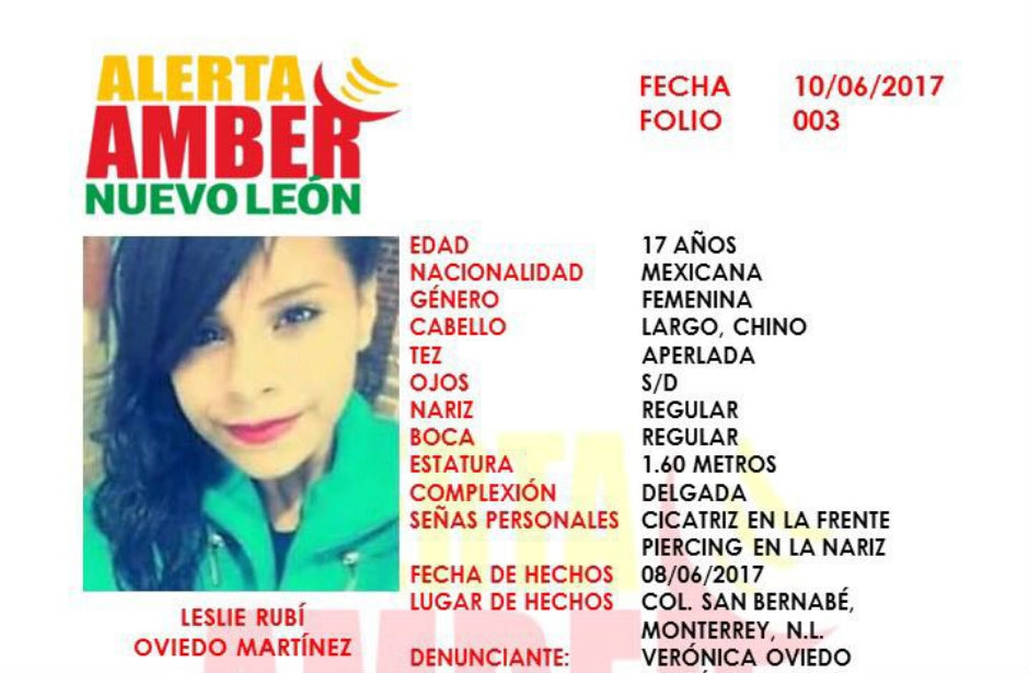Monterrey, 27 Junio.-  La mamá de Leslie Rubí, una joven de 17 años de edad que se reportó como desaparecida desde el pasado 10 de junio del presente año, confirmó su muerte, luego de que Peritos de la Procuraduría General de Justicia del Estado de Nuevo León, encontraran su cuerpo sepultado en el patio de una casa.