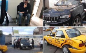 Según el reporte, conducía una camioneta Jeep con placas para personas con discapacidad 125TT con la que atropelló a una pareja que viajaba a bordo de una motocicleta sobre la calle de Emiio Carranza, además de este percance Carlos Díaz intentaba ingresar con el auto a su domicilio, pero debido a su estado al echarse en reversa traspasó a pared de un taller mecánico que se encuentra frente a su casa y chocó con dos taxis del sitio ADO.