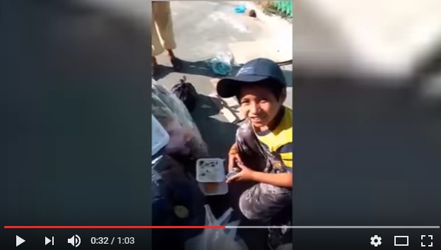 El video, grabado por un hombre que se percató de los hechos, da cuenta de un niño que está revisando varias bolsas negras de basura que estaban tiradas en la esquina de calle para tratar de encontrar algo comestible.