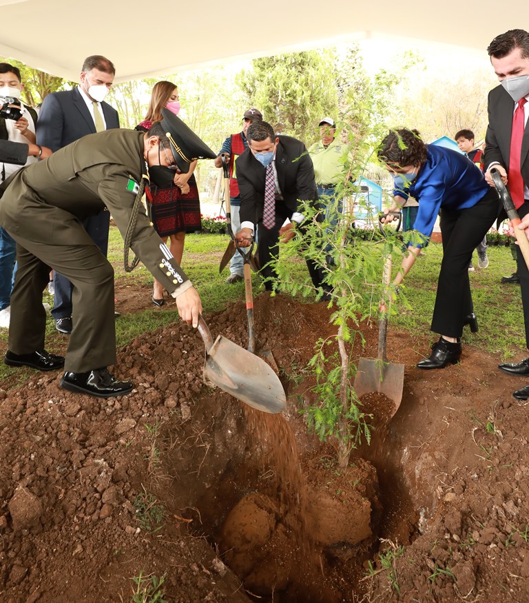 Además, durante una visita a Dolores Hidalgo, el Gobernador sembró un ahuehuete, nieto del Árbol de la Noche Triste, en el Megaparque Bicentenario de Dolores Hidalgo.