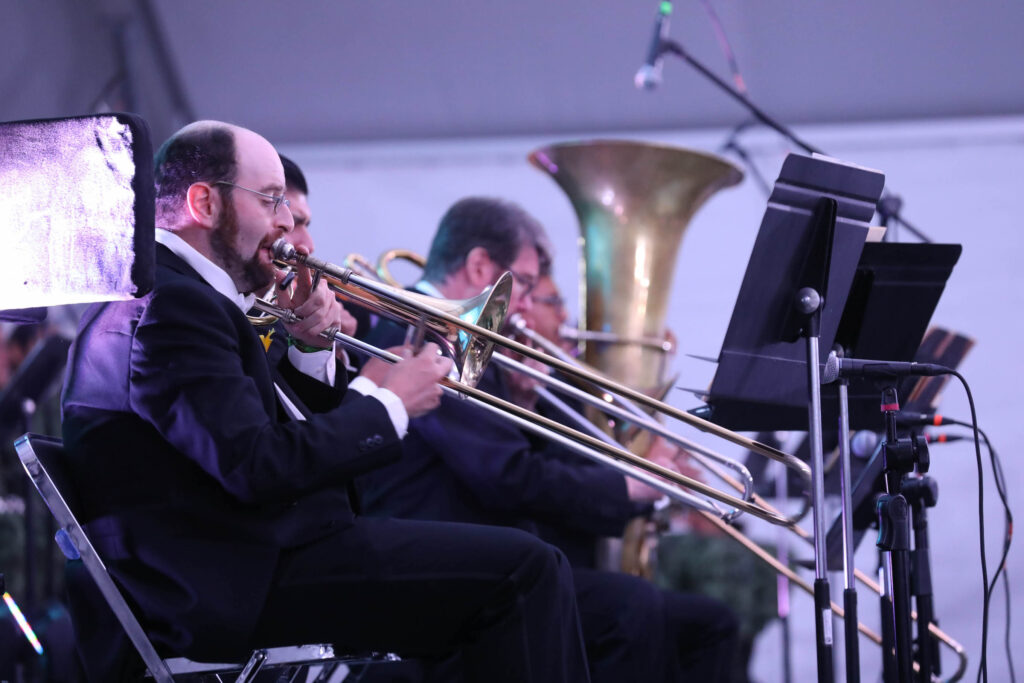 Luego se cimbró la explanada del Parque Guanajuato Bicentenario con piezas como “Obertura 1812”, de Chaikovski; “Fanfarria para el hombre común”, de Aaron Copland y ‘Huapango’, de Pablo Moncayo, entre otras, interpretadas por la Orquesta, bajo la batuta del Director Roberto Beltrán Zavala.
