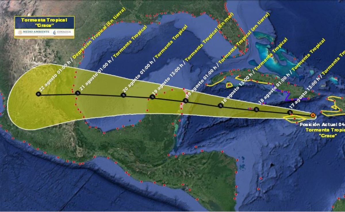Ciudad de México 18 de agosto._ ‘Grace’ tocaría la península yucateca por el estado de Quintana Roo durante la noche de este miércoles como huracán categoría 1.