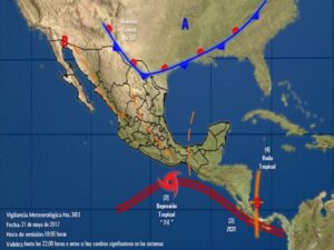 Ciudad de México, 31 Mayo.- De acuerdo con el Servicio Meteorológico Nacional (SMN) este miércoles por la mañana se formó la Depresión Tropical 2-E en el Océano Pacífico, aproximadamente a 294 kilómetros al suroeste de Puerto Escondido, Oaxaca y a 325 kilómetros al sureste de Acapulco, Guerrero.